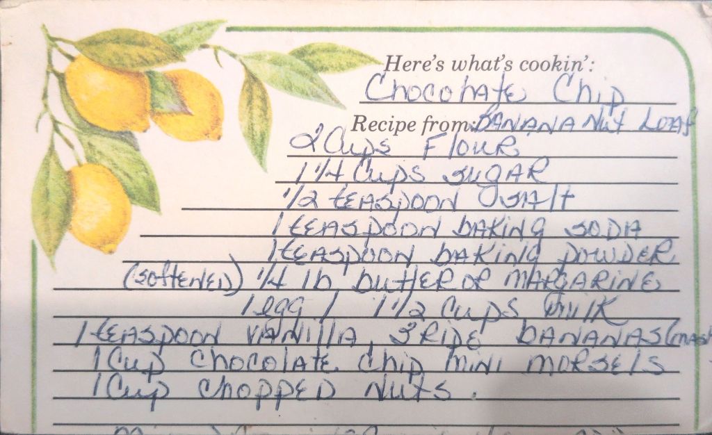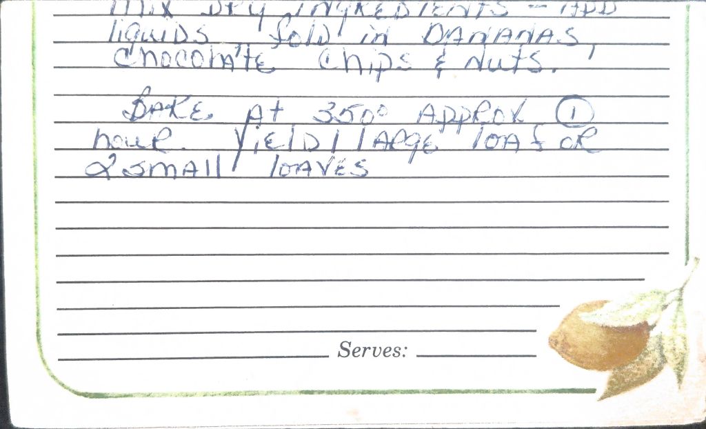 First recipe from the box, thanks to my daughter Vivienne and the bunch of overripe bananas chilling on my counter. There’s no author listed on the card, but I’m pretty sure it’s Aunt Deb’s tried and true banana bread recipe. The steps are easy enough, and since I’ve whipped up banana bread like a million times, I’m feeling good about nailing this one!