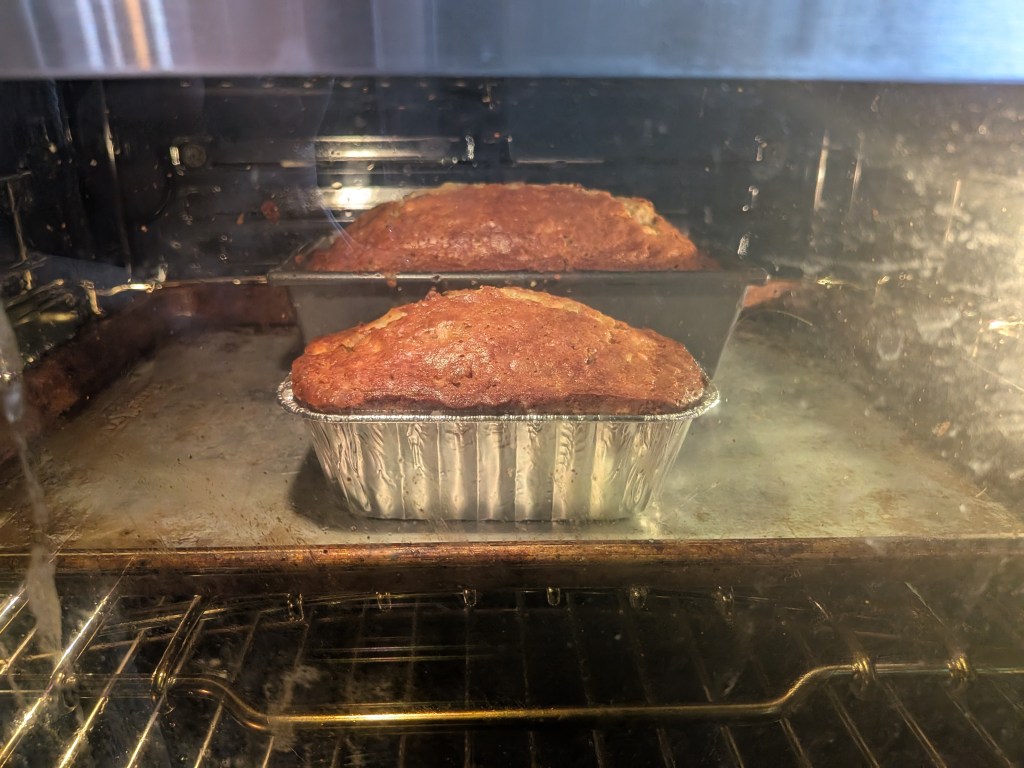 Into the oven at 350° and bake for an hour. The small one took just under and hour, and the big one took more like an hour and ten minutes.