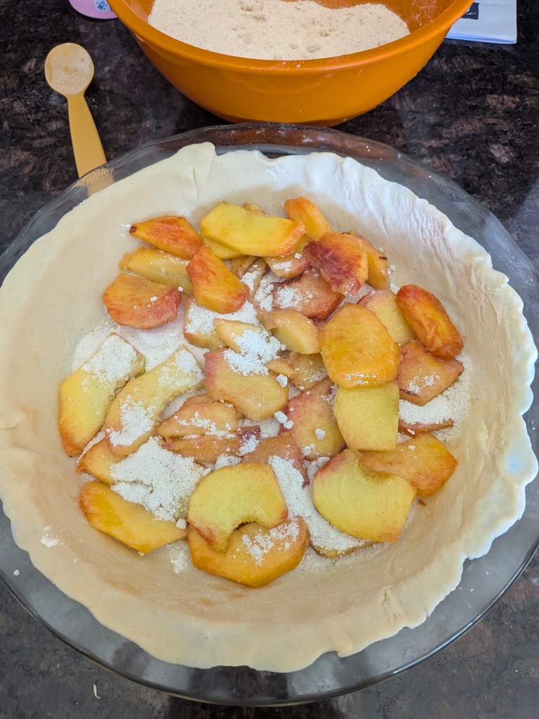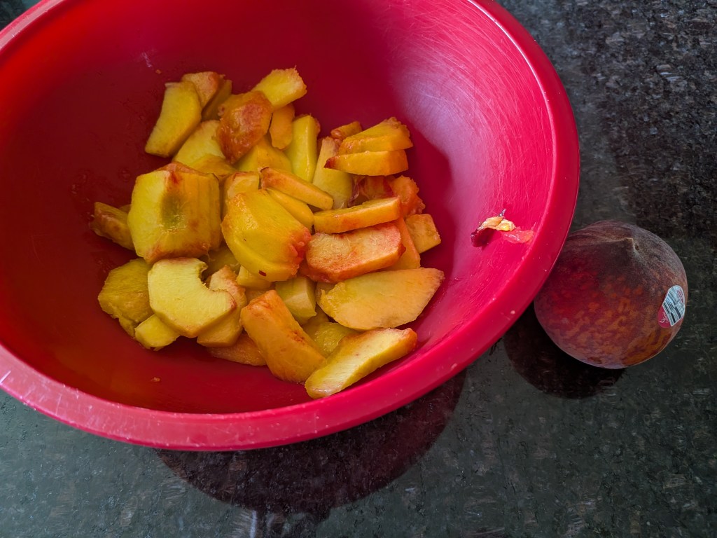 First cutting up the peaches. I ended up using 5 but definitely regret not using the 6th since the filling cooked down considerably.