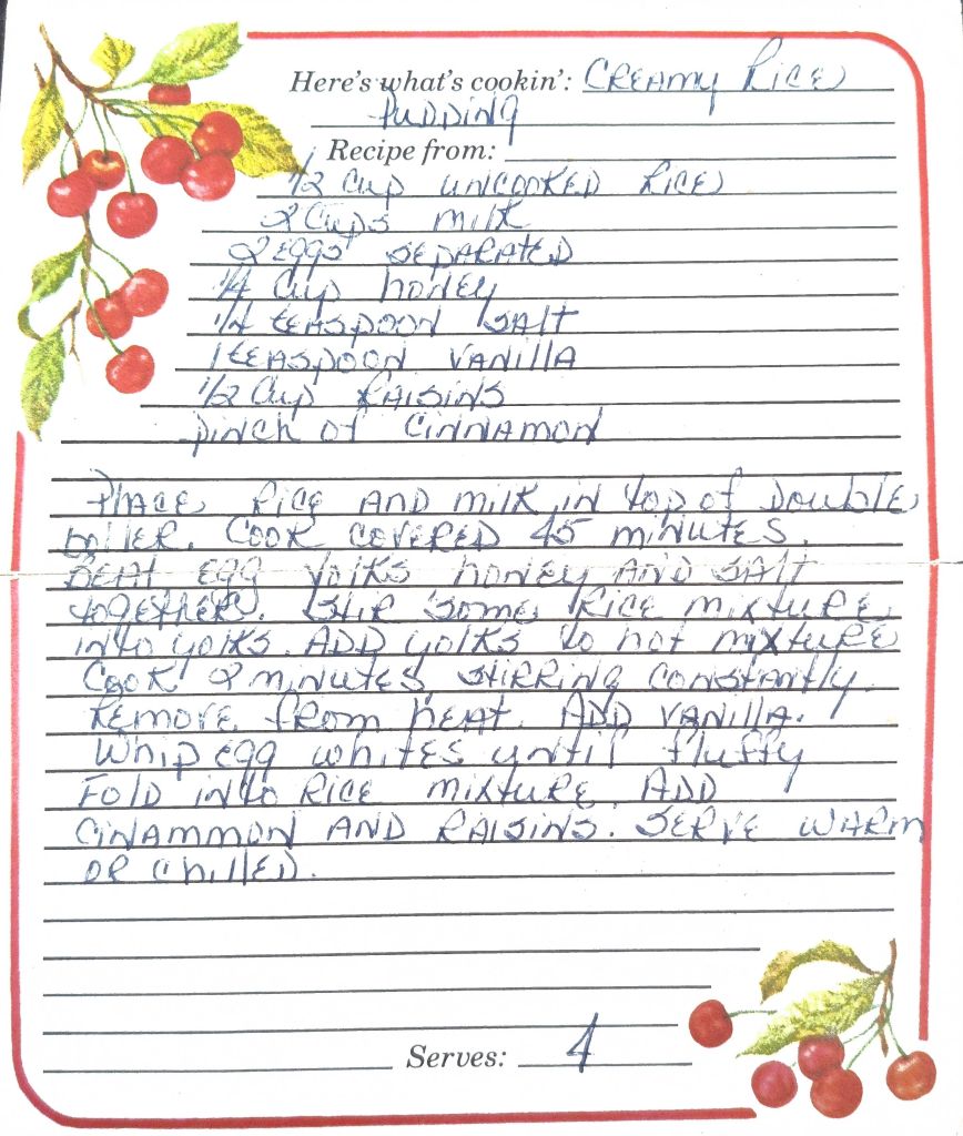 1. In a double boiler cook the rice and milk together for 45 minutes