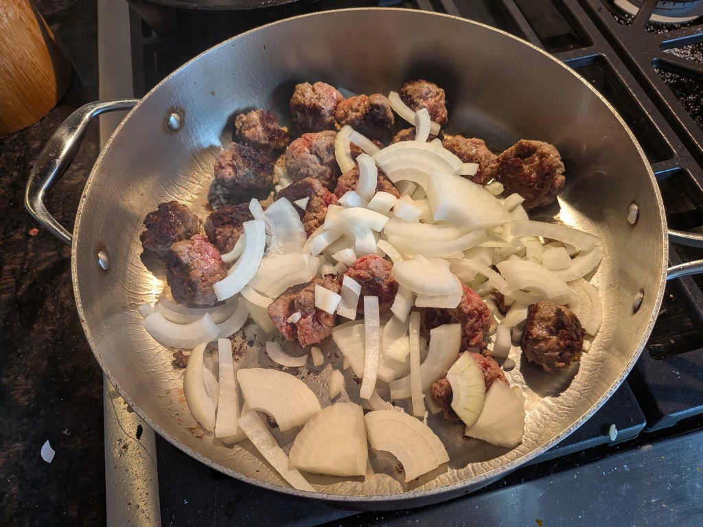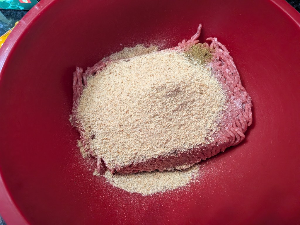 Onwards to the process. First mix the ground beef with the bread crumbs and seasonings. If I were to make this again I would probably add an egg or maybe some milk in to make the meatballs a little more tender since they were on the denser side.