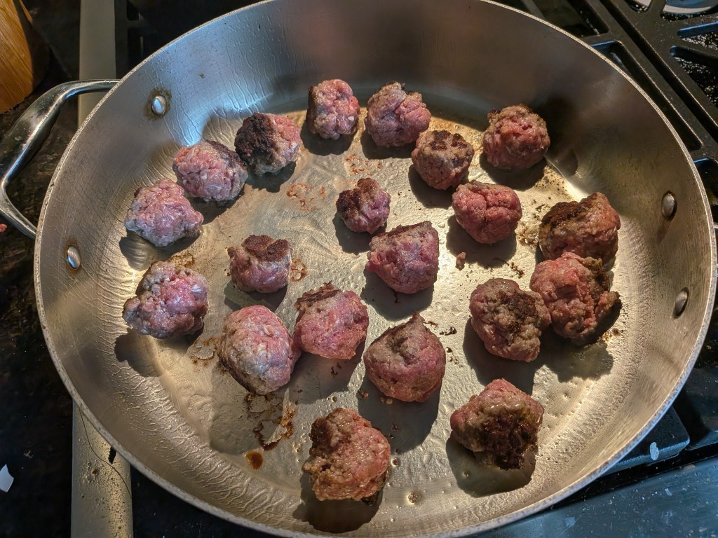 - Form into small balls, and brown in a pan with the oil over medium high heat.