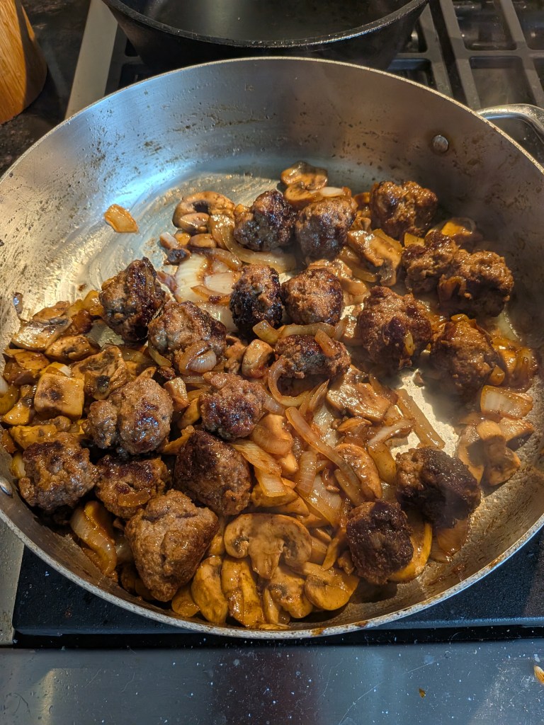 This was an interesting recipe, since it really doesn’t have any liquid in it. Adding just the sour cream with the bouillon makes a very thick and flavorful sauce that I was a fan of, but those picking out their mushrooms thought it wasn’t saucy enough. Either way it was a fun riff on stroganoff that makes for an easy weeknight meal.